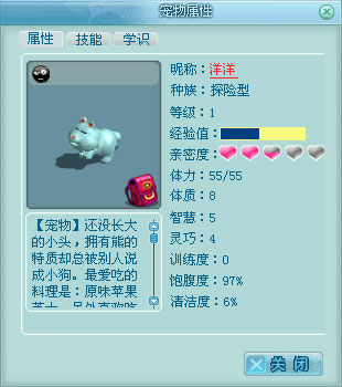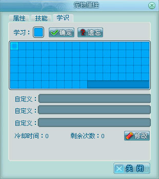 学识方面,主人可以将需要学习的字打进去点击确定,宠物就开始学习这个字了。当下方的“冷却时间”变为0时才可以学习下一个字,剩余次数为0时这个字才完全学会。会说的字多了,主人还可以将这些字自定义为一句话,让宠物说出来。