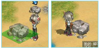点击背包里面之前购买的“石锤”,人物头上出现石锤标志后。点击碎石台,会出现“碎石”提示。