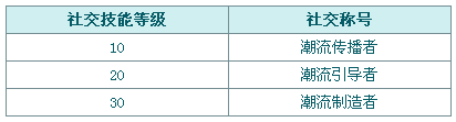 在社交技能达到一定等级的时候(10级、20级、30级)都会获得相应的社交称号,来吧,让我们做个好朋友,开着我们超靓丽的社交称号一起做个社交达人!