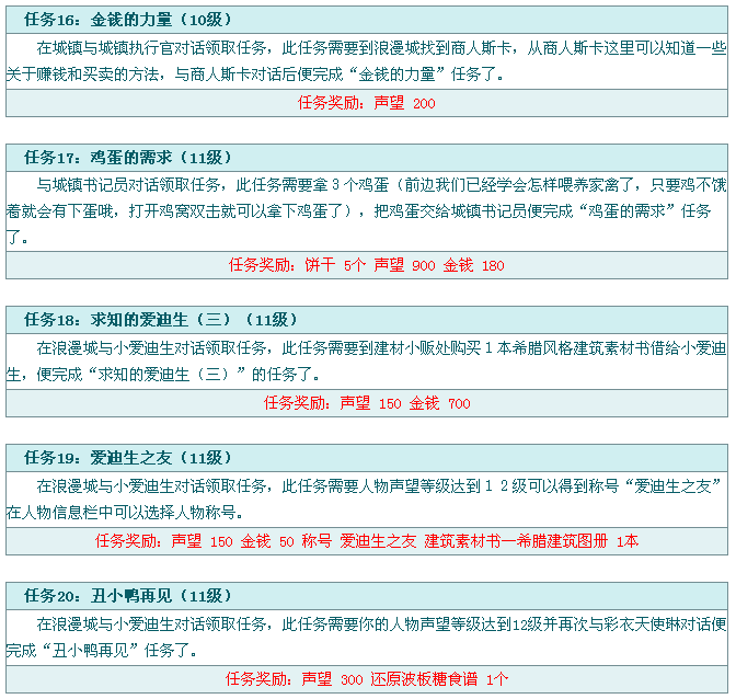 10级以后就需要经常到浪漫城了,很多任务都需要找浪漫城中的NPC来接受,而且这里是玩家进行交易的主要场所。