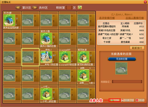 点击庄园站点即可入住