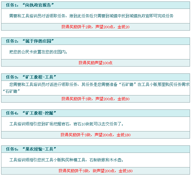入住庄园后就可以到工具培训员NPC领取任务。(支线任务)