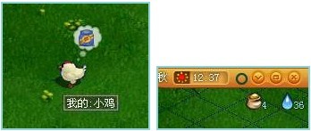 喂养的时候你可以拿着饲料直接点击小鸡喂养,也可以在选择饲料之后点击画面左上角的那个饥饿标志哦,这个时侯你就会自动跑过去喂养了,怎么样,半自动的养殖功能不错吧
