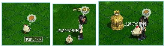 6、我们的小鸡可不光是只吃东西啊,当它的头上出现一个刷子标注的时候,你可以用木刷子把我们可爱的小鸡刷洗的干干净净,小鸡也会很开心的呢,“木刷子”是在小镇的“工具小贩”那里购买到的