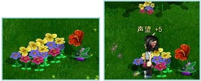 看,我们美丽的花儿长大了,是不是非常漂亮啊,长成的花是可以采集的,我们只需要点击一下花,人物就会自动过去采集花朵的,不过采集一次花儿就没了哦