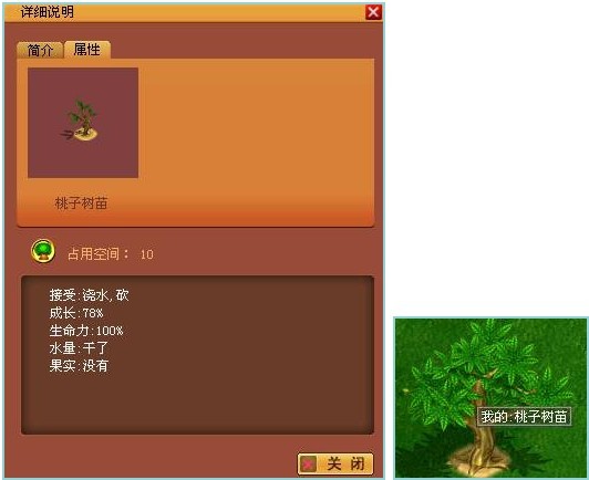 桃子啊桃子你什么时候才能成熟呢,这个时侯我们可以右键点击桃树然后查看详细说明哦