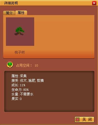 长成以后的桃树是不需要再浇水的,一颗果树最多才可以采摘10颗果实,你可以点击右键查看一下详细说明: